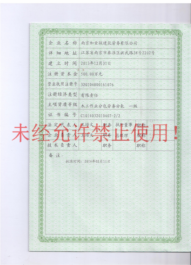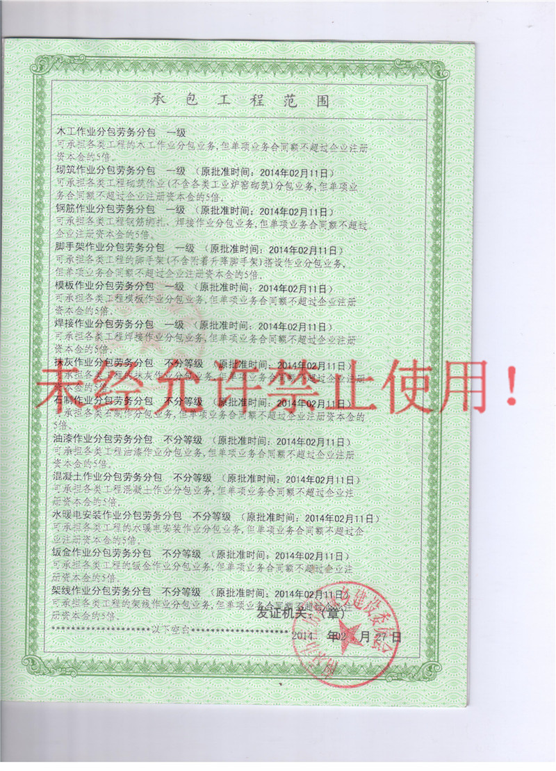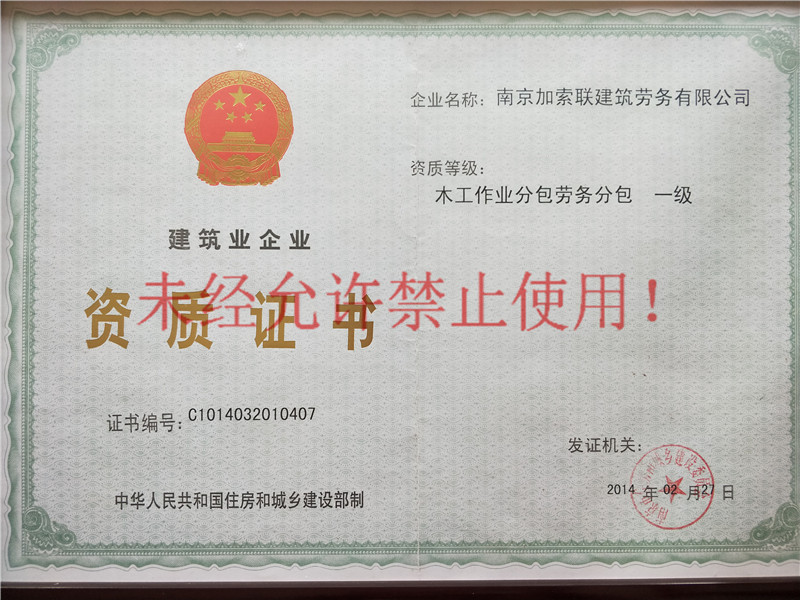 - 木工作业劳务分包 一级