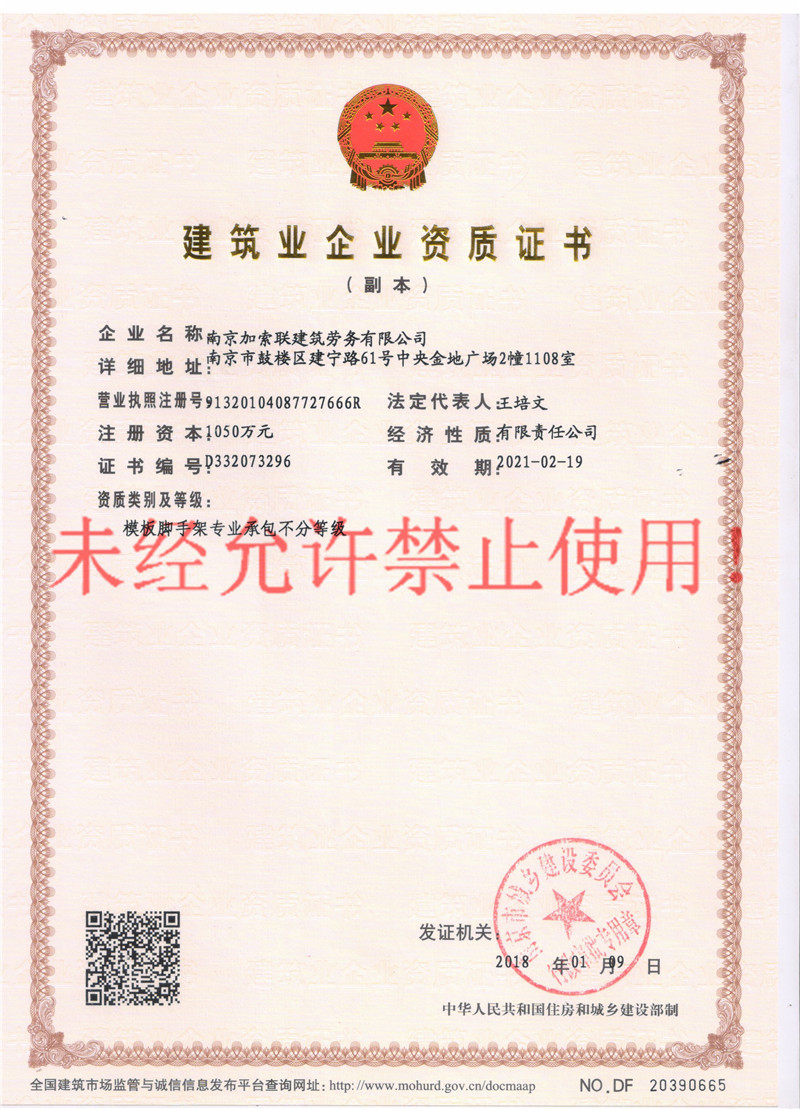 - 模板脚手架专业承包 不分等级